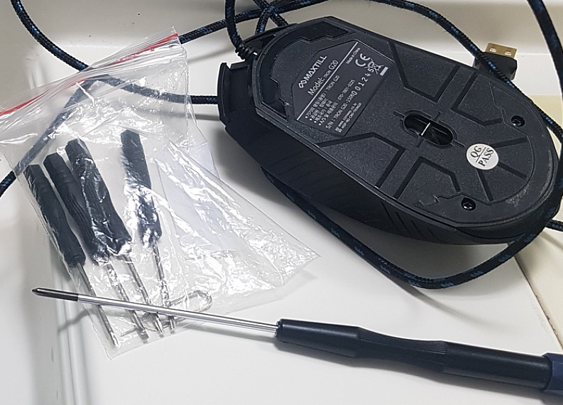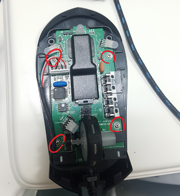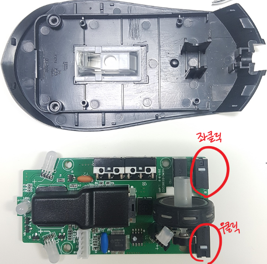 PCB 위쪽에 있는 좌클릭 우클릭 스위치의 하우징을 열어 접점을 만날 시간이다.