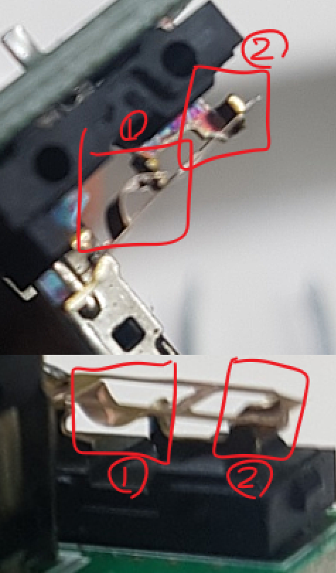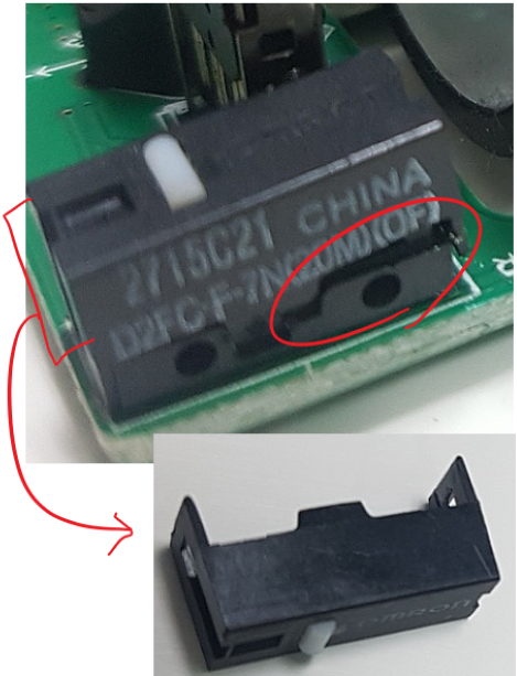 3번이 조금 곤란하다. 이 경우 마우스 하우징(플라스틱 부분) 자체의 문제인 경우가 많은데, 스위치를 잘보면 뾰족 튀어나온 부분이 있다.
