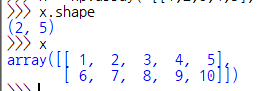 x = np.array( [[1,2,3,4,5], [6,7,8,9,10]] )