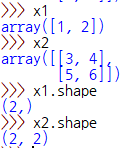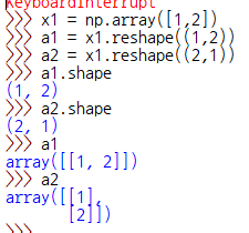 ( a1.shape = (1,2) / a2.shape = (2,1) )