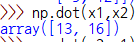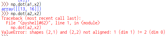 np.dot(x1,x2) 시에 연산이 가능! 결과가 [13,16]으로 맞다! ….. ? ?????
