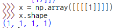 이 4차원 배열에서 1차원 데이터가 1개 있다. ( 1을 담고있는 [1])