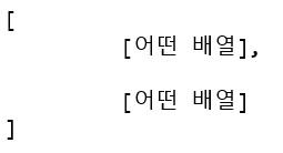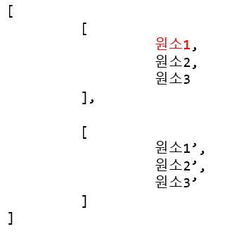 중첩대괄호가 2개(Nested)이니 당연히 2차원 데이터다.
